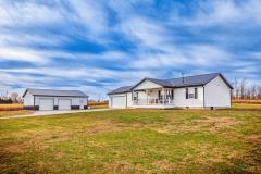 Welcome home to this inviting ranch-style retreat perfectly set on 5 peaceful country acres. Designed with comfort and functionality in mind, this home features an open-concept layout with soaring cathedral ceilings, creating a bright and spacious feel throughout.The home offers 3 bedrooms and 2 full bathrooms, including a private primary suite with a walk-in closet and adjoining bath. The kitchen showcases all-wood cabinetry, a center island, and warm butcher block countertops. Cozy up by the pellet stove fireplace, or step outside to enjoy the beautiful front porch and back deck, perfect for relaxing and taking in the country views. Car enthusiasts, hobbyists, or anyone needing extra space will love the 2-car attached garage plus the impressive 30' x 40' detached garage with concrete floor and electricperfect for a workshop, storage, or toys. Peaceful setting. Functional layout. Space to live, work, and enjoy the outdoors. This one checks all the boxesdon't miss it!