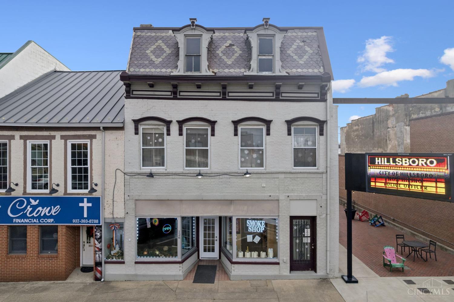 Excellent mixed-use opportunity in the heart of downtown Hillsboro! Located on N. High Street, this two-story commercial building offers prime street-level visibility in a well-traveled, walkable business district surrounded by retail, dining, professional offices, and government buildings. The main level features a versatile commercial space suitable for retail, office, or service-based use, while the upper level includes an apartment, providing valuable additional income or an ideal live-work setup for an owner-occupant. Classic building character combined with a functional layout makes this property well-suited for investors, entrepreneurs, or small business owners. High-visibility location, strong downtown presence, and income-producing potential make this a rare opportunity in Highland County. Don't miss your chance to own a cornerstone property in one of Hillsboro's most established commercial corridors.