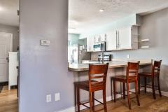 Counter Bar, Vinyl Floor, Wood Floor, Eat-In, Wood Cabinets