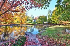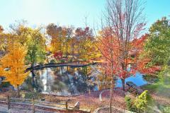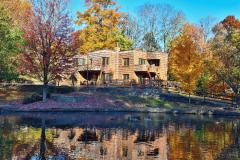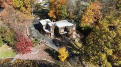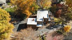 Frank Lloyd Wright-Inspired Contemporary Estate! One of Green Township's most iconic homes, this 4BR, 3.5+BA masterpiece sits on 1.4+ acres with panoramic views of double ponds and lush landscaping. A private bridge leads to your own ecosystem alive with wildlife, flowering plants, and mature trees-a true gardener's paradise. Inside, enjoy spacious living areas, an eat-in kitchen, formal dining room, and brick WBFP. The finished lower level features a family room with WBFP, wet bar, and hidden wine room. Outdoors, a 40'x20' heated pool awaits with summer house including kitchenette, great room, WBEP, and 24'x24' covered patio. Bath house with shower and changing rooms, plus firepit, shed, and serene water views.