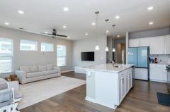 3 bedrooms, 3 full baths, an open-concept family room and kitchen, and a 2-car garage. As you enter from the covered front porch, you will find a bedroom with a walk-in closet and convenient access to a full bath in the hallway. The main living space includes an open-concept kitchen, breakfast area, and family room. The kitchen includes an abundance of cabinetry and a large island with a sink overlooking the family room. To the side of the kitchen is a spacious breakfast area, offering space for a table and convenient access to the covered back porch, Here, you can enjoy reading a book on a cool summer night or grilling out with friends! Right around the corner from the kitchen is the primary suite. This spacious suite comes with a private bathroom that leads into a huge walk-in closet. Door to the walk-in closet that leads directly into the laundry room. Upstairs 3rd Bedroom & Loft Area with Full bathroom