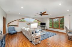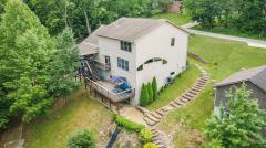 Absolutely one of a kind lake home with incredible views, tiered deck, extra golfcart driveway to get to the lake, 3 beautifully updated stories + an indoor basketball court! This home really has it all with a traditional yet modern feel, 5 spacious bedrooms, expansive gourmet kitchen with double island, 1st floor mudroom, 1st floor office, primary suite with lake views, 2nd floor laundry, spacious bedrooms, oversized deep garage, walkout finished basement with wet bar and recreation area, huge lower level with pickleball court/basketball court. New AC, hot water heater, and brand new carpet.