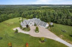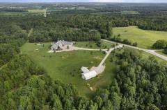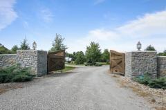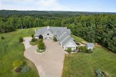 This exceptional 23.6-acre private property offers a spectacular main home with over 10,000 square feet of luxury living space. The inviting hearth room showcases a massive stone fireplace, while the elegant living room offers a refined setting both connected by a beautifully designed cocktail room. The home is rich with thoughtful features including a gourmet kitchen, spacious butler's pantry, study, atrium, screened porch, potting room, and an oak-paneled elevator spanning from basement to second floor. The impressive stone entrance, gated drive, circular paver driveway, and finished garage floors set the tone upon arrival. A separate custom barn/home with upscale finishes provides flexibility for multigenerational living or rental opportunities. Ideal for equestrian use, aviation, events, or short-term rental ventures.