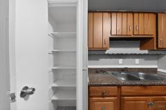Counter Bar, Vinyl Floor, Wood Cabinets, Pantry