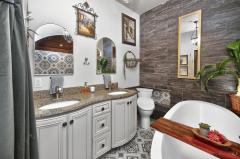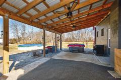 Built in 1951 and recognized as Goshen's historic Old Dairy, this thoughtfully renovated 2-bedroom, 2-bath sits on 2.1 fully fenced acres with public water, sewer, and natural gas. Original character is preserved through hand-hewn pine tongue-and-groove walls and a solid pine sliding barn door, while modern improvements include all-new windows (2025), a tankless water heater, & a three-stage whole-home water purification system. The Primary Suite addition offers a private retreat with hand-hewn pine finishes, a wood-burning stove, walk-in closet, & spa-inspired bath with custom double vanity, granite counters, oversized soaking tub, & floor-to-ceiling porcelain tile. Outdoor amenities include a 12x16' covered back porch, an Amish-built barn with loft, LED lighting/electric, steel roof lean, & 30-amp RV hookup; an outdoor shower with hot & cold water, above-ground pool with new pump, & private gun range. A rare blend of history, craftsmanship, and modern comfort.