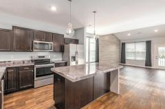 Solid Surface Ctr, Vinyl Floor, Wood Cabinets, Island