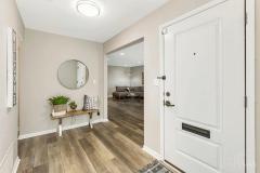 Laminate Floor, Chandelier, Window Treatment
