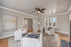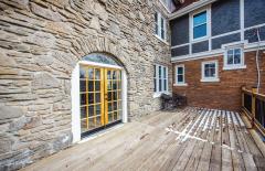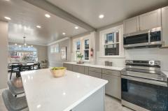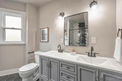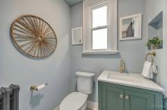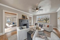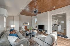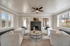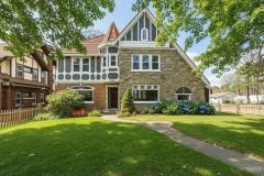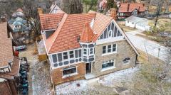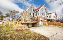 WOW-Beautifully renovated Tudor blending classic character with thoughtful modern updates. The living and dining rooms showcase inlaid wood flooring and crown molding, with the living room anchored by a Rookwood tile fireplace. The dining room features chair rail detailing and a graceful, curved window providing natural light and outdoor views. The kitchen offers quartz countertops, a center island, abundant cabinetry, and generous workspace open to the dining room for easy everyday living & entertaining. A family room with walkout access to the deck and a convenient half bath complete the main level. The 2nd floor includes 3 bedrooms and a full bath, highlighted by a spacious primary bedroom with a large walk-in closet. The 3rd floor offers 2 additional bedrooms and a 2nd full bath, while the lower level features a rec room for added living space. Recent improvements include fresh interior paint, new windows throughout, and systems with individual furnaces & thermostats for each floor