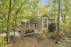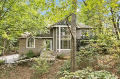 Tons of natural light in this custom built contemporary home on a private, wooded .78 acre lot! Open and spacious floor plan with cathedral ceilings and walls of windows. The kitchen was fully remodeled in 2023 with stainless steel appliances, solid surface countertops and new cabinets. New carpet, paint and fixtures throughout! Enjoy the sunroom, spacious deck, and a versatile loft space off the primary bedroom (great for an office or reading nook). The walkout lower level has a large guest suite including the 4th bedroom, full bath and large family room. Major updates include HVAC, roof, and water heater ('17) plus a new driveway ('24). Huge deck with covered outdoor kitchen is perfect for outdoor entertaining! Peaceful setting with modern style - nothing to do but move in!