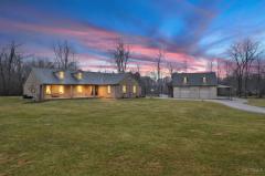 Private, peaceful, and packed with unique features! This beautifully maintained custom ranch sits on 2 scenic acres with pond and wooded views. Inside you'll find an open-concept great room with fireplace flowing into the dining area and kitchen with solid wood cabinetry and a center island. The primary suite offers a walk-in closet and private bath, while additional bedrooms provide flexible space for guests or a home office. The finished basement is perfect for entertaining and includes ample storage plus the option for a fourth bedroom. Car enthusiasts and hobbyists will love the detached garage/workshop with lift and an apartment abovea rare and valuable bonus. All of this on a quiet no-outlet street offering privacy while still being conveniently close to everything Cincinnati has to offer. HVAC-Water heater 2020, Roof 2025