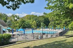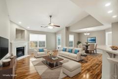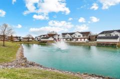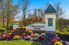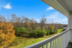 Bright 2 bedroom, 2 bathroom upper floor condo in Chestnut Park, featuring an open floorplan with vaulted ceilings, laminate floors & fresh paint throughout; spacious living room with fireplace walks out to covered deck with wooded views; fully equipped kitchen with counter bar; primary suite with large walk-in closet & adjoining full bathroom; second bedroom with walkout to additional covered deck; one car attached garage with direct entry to building. Community amenities include a pool and updated clubhouse.