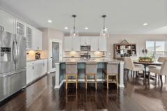Walkout, Wood Floor, Eat-In, Wood Cabinets, Pantry, Island, Quartz Counters