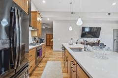Walkout, Wood Floor, Eat-In, Gourmet, Wood Cabinets, Island, Quartz Counters