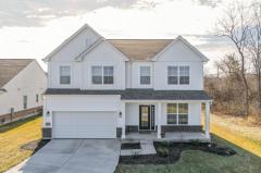 New opportunity awaits in Timber Trails! Lake views & neighborhood walking trails right outside your door! This 1 year old home at the end of a cul-de-sac curates a beautiful blend of warm tones & soft finishes you won't want to leave. Open kitchen & dining area feature gorgeous wood floors & cabinetry that steps right out back to a large, level & sunny yard. The living room allows light to pour in with abundant windows. Large bedrooms upstairs including a vaulted primary suite with walk-in closet, tiled bath & double vanity. Your friends & family will love the extra long driveway holding 12 cars, fully finished 2 car garage & full basement for storage or your finishing touch. The community connects to Rentschler Forest Park-125 acres with kayak & canoe access to Great Miami River, paved + primitive trails, playgrounds, picnic areas & more. Other nearby favorites like Niederman Family Farm, Pleasant Hill Golf Course & shopping & dining just down the street! Radon mitigation built in.