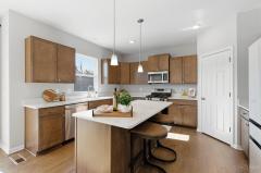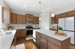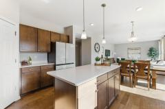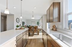 Counter Bar, Walkout, Wood Floor, Eat-In, Gourmet, Wood Cabinets, Pantry, Island, Quartz Counters