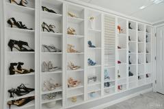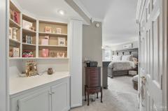 Living Room Features Walkout, Laminate Floor, Bookcases, Window Treatment