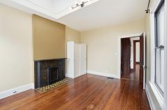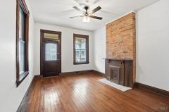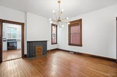 Wood Floor, Chandelier, Fireplace