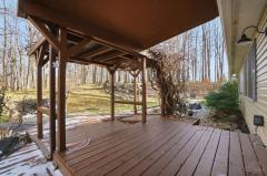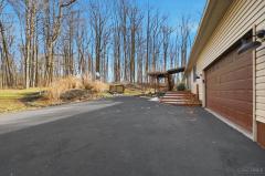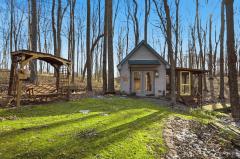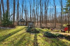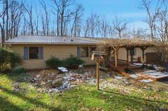 Located off a picturesque country road. Stunning private, secluded, wooded setting. Nature lovers delight. Ranch with an open floor plan built on crawl is situated on 5 acres. Also features the following: Small cabin with electric & water spigot, dog kennel, chicken coop, swing on covered porch, & plenty of walking trails. Split bedroom design with 3 bedrooms with 2 full bath & study. Front entry 2.5 car garage space with an extra parking pad. Quart kitchen counter tops, new stainless steel 4 burner gas stove, refrigerator, dishwasher all stay, farmhouse sink & a walk-in kitchen pantry. Great room with vaulted ceiling and stove. 22 X 13 dining area also features a vaulted ceiling, French doors, lovely chandelier & wooded nature view. Hard surface flooring throughout. Whole house generator, oversized garage has an electric vehicle charging station, insulated windows & more. An array of amenities too numerous to list. Good value...compare. Must see.
