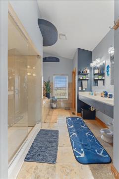 This is more than a home, it's a lifestyle intentionally designed to be lived and felt. Perfectly suited for a family compound, or multi generational living! Tucked away on 10 beautiful flat, fenced acres, this custom 5-bedroom, 3-bath retreat blends warmth, craftsmanship, and self-sufficiency with spaces meant for both gathering and escape. Soaring ceilings and custom shelving & wall accents set the tone, while geothermal HVAC and updated systems offer peace of mind. Outdoors tells its own story: a stocked 2-acre pond with a sandy beach, fenced pasture, trails, a 30-tree fruit orchard, and sunset views from the deck and hot tub. Multi level barn, Large Garage perfect for RV or boat storage. Evenings are spent under the pergola by the fire pit, and guests are welcomed with an RV hookup and outdoor shower. The finished lower level is perfect for hosting or retreating. Rare, intentional, and impossible to replicate, this is a place where everyday life feels like a private paradise!