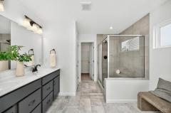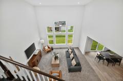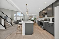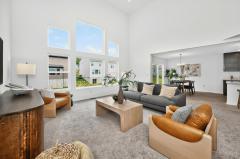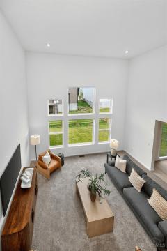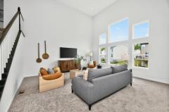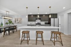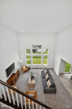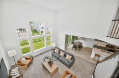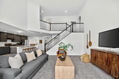 Like new 2024 modern contemporary home with dramatic high two-story ceilings and abundant natural light. This 2,848 sq ft home features 5 bedrooms, 3.5 bathrooms, designer colored cabinetry, elegant pendant and dining lighting, and a brand-new backyard patio perfect for relaxing or entertaining. The main level features a private, quiet, exceptionally spacious bedroom with a full bathroom, ideal for guests or a home office, offering a variety of flexible uses. Move in ready in the desirable Shaker Run Golf Community with pools, fitness centers, trails, parks, and championship golf.