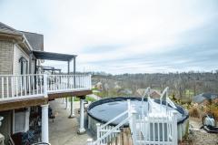 Discover the perfect blend of space, flexibility, and stunning views in this beautifully maintained 3‑bedroom, 3‑bath home overlooking the river and golf course. A rare opportunity for multi‑generational living with three separate "suites" with each having its own kitchen, bedroom, ensuite bathroom and family room, Two living spaces on the first floor with each having its own separate entrance. The third private living space is on the lower level. Enjoy an oversized garage, ideal for vehicles, storage, or a hobby space. Step outside to your summer retreat which includes an above‑ground pool and a spacious deck the length of the home designed for relaxation and entertaining. With its versatile layout and scenic backdrop, this home offers exceptional value and endless possibilities.