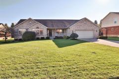 Tucked away on a quiet cul-de-sac, this open-concept 3-bedroom ranch features a split floor plan & soaring cathedral ceilings. The home boasts beautiful hardwood floors & a gas fireplace in the great room. There is a generous breakfast room with a bay window overlooking a private backyard with no rear neighbors, & kitchen equipped with 42'' grayson maple cabinets, two pantries, bar seating & a prep island. Huge basement includes a full bath rough-in, ready for your vision to finish or for storage needs. Oversized garage.