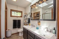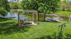 Lakefront gem in Lakengren! This beautifully updated 4-bdrm, 2-ba ranch offers 2,652 SF of living space on a picturesque 0.43-acre lot. Open floor plan features warm wood floors, a cozy LR w/brick frpl, a dining area with lake views, and a stylish Kitchen w/butcher block counters, sleek backsplash, and a roomy pantry. The oversized owner's suite includes an updated en-suite bath & walkout access to covered deck and recessed hot tub area again w/stunning lake views. Two add'l spacious bdrms complete main level. Full walk-up lower level adds even more living space w/FR, a rec room w/theater setup, and a finished flex rm perfect for a home office or craft space. Outside, enjoy incredible 8x48 covered back porch overlooking lake & parklike backyard, a 11x40 outbuilding w/electric & A/C, & att 11x15 party room. The waterfront includes 2 private docks in a protected cove w/main lake views and 146 Ft of water frontage. Attached 2-car garage w/overhead storage completes the package!