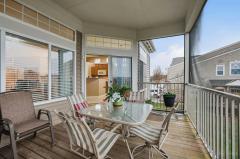 Beautifully maintained home with an open floor plan in the desirable Bridge Point community. New HVAC system (2024) and gleaming hardwood floors throughout the main living spaces. The home features two spacious bedrooms plus a study that can easily function as a third bedroom. The large dining room is filled with natural light, perfect for everyday living or entertaining. Enjoy a rare attached 2-car garage equipped with an electric vehicle charging outlet. Additional features include an electric fireplace with custom built-ins and a screened-in deck overlooking the community park. Community amenities are exceptional - two pools, a clubhouse, fitness center, and meeting room, all included in the HOA. The HOA also covers water, sewer, and trash. There are 15 steps up to the main living area from the garage level. HOA fee: $366.91/month. Bi-annual assessment: $248/year.