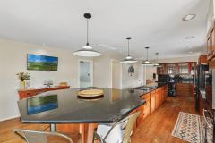 Counter Bar, Walkout, Wood Floor, Marble/Granite/Slate, Eat-In, Gourmet, Wood Cabinets, Pantry, Island