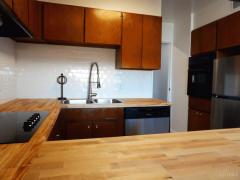 Counter Bar, Solid Surface Ctr, Laminate Floor, Galley, Wood Cabinets